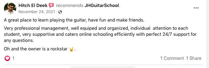 Best place to learn guitar, POINT. I've tried countless teachers and Jack was the only one who was able to teach me the guitar and make me love it even more!